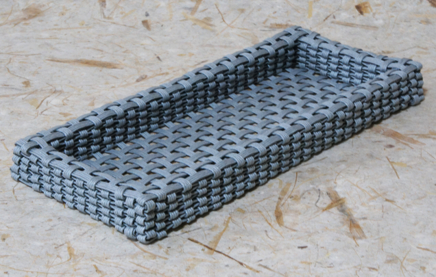 四つ目組みの底面から、折りたたんで、積み上げて作った小物入れ。組み目が整わず結構手こずりましたが、塊感のある面白いペントレイが出来上がったように思っています。