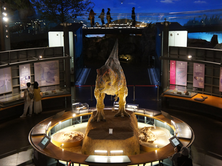 恐竜の骨化石を展示した国内最大の博物館、福井県立恐竜博物館。多くの恐竜骨化石が大迫力で展示されているなかで、再現された動く恐竜にどうしても目を奪われてしまう。