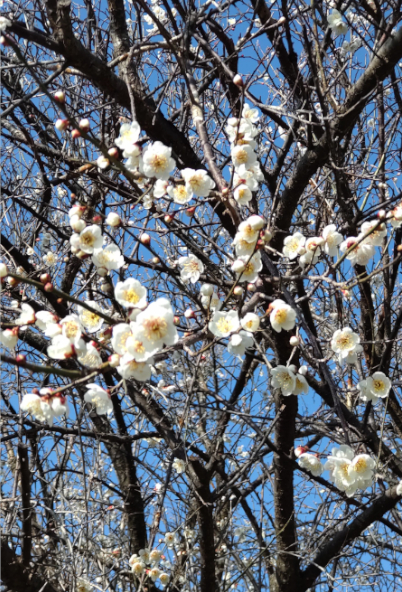 2月の中旬なのに、とても暖かい。満開まじかの白梅はとても華やかだったのでパチリ。最高気温19.7度なのに最低気温は0.4度、この温度差に身体がついていけない。