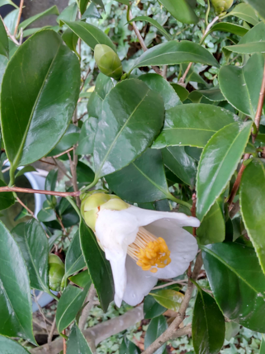 3月下旬、我が家の椿が咲きはじめました.暖かいと思ったら次の日は温度がズンと下がり、気温の乱高下が続いていましたが、固い蕾みの侘助がやっと春を告げてくれました。