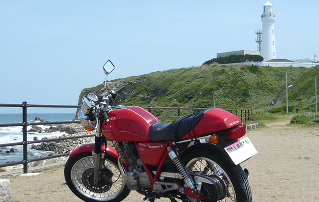 長く連れ添ってきたクラブマン。いろいろなところに出掛け、いろいろな思い出をつくりました。犬吠埼灯台がみえる所で記念撮影。相棒もいろいろなところに傷みがでてきました。