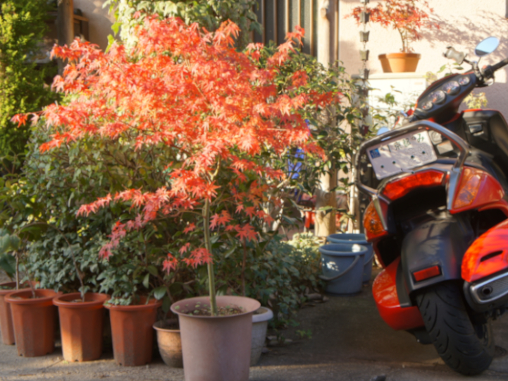 我が家にも紅葉がやってきた。赤ワインのような濃い色になって枯れるのではと心配したけれど、きれいに色づきました。朝陽を浴びて輝くもみじで、晩秋を満喫しました。