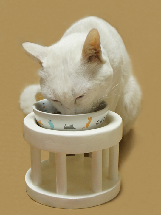 我が家の愛猫『にぁ』の食事台を化粧直ししました。作った時は仕上げをしないでいましたが、汚れと傷みが目立ってきたので、水性塗料を使ってうるし調に仕上げてみました。