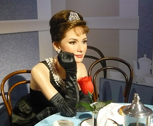 お台場のマダムタッソー蝋人形館。マネキンとは全く違う造形の世界に紛れ込んで、有名人に酷似している中で何故かあまりに似ていないオードリー・ヘプバーンと自撮りショット。