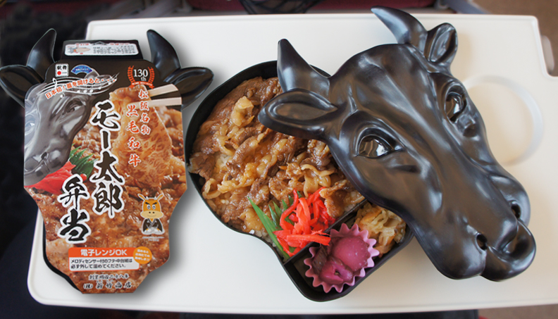 松阪名物 黒毛和牛『モー太郎弁当』を美味しくいただきました。蓋を開けると『ふるさと』のメロディが流れてくるメロディセンサー付きで、牛の形をした弁当箱のすきやき駅弁です。