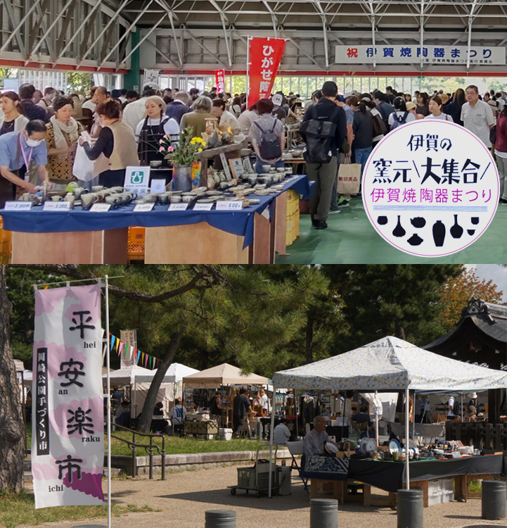 ぼってりとした土鍋や野趣味のある薄手の茶碗など良いものがたくさんあった伊賀焼陶器まつりと、様々なジャンルの手作り作品が集まった岡崎公園の平安楽市に行ってきました。